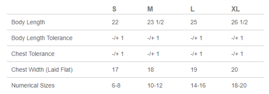 Product Overview 5.3 oz./yd² (US) 8.8 oz./L yd (CA), 100% cotton, 20 singles Classic width, rib collar Taped neck and shoulders for comfort and durability Tear away label TODDLER SIZE CHART: YOUTH SIZE CHART: